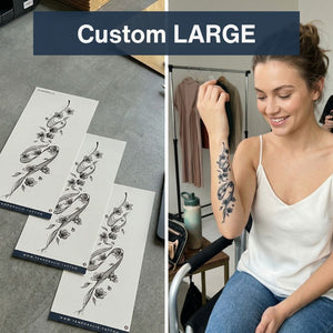 Your design, in real jagua ink. Looks and feels like a real tattoo — lasts 1–2 weeks, then fades naturally.