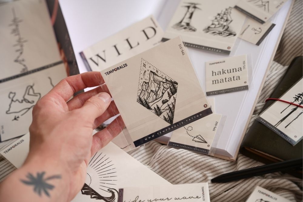 This isn't a sticker. Jagua is a natural ink that bonds with your skin — the same way real ink does, just temporary. It develops over 24–48 hours into a deep blue-black.